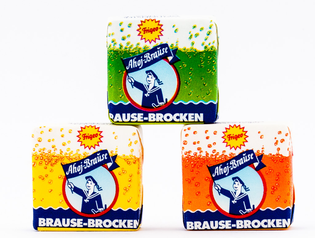 Definitely another Carnival candy is Ahoj sherbet. The product of the Cologne company Frigeo is present everywhere during Carnival. You can see a lot of advertising posters around and of course Ahoj Brause is thrown into the crowd as well. The sherbet candy was invented in 1925, originally as a powder that can be loosed in water. What you get is a refreshing and bubbly lemonade. The Ahoj Brause-Brocken are kind of a drop you can put in your mouth and let it loose. It sparkles and the flavor is sweet, sour, and fruity at the same time. There are four different sorts of the Brause-Brocken, raspberry, orange, lemon, and woodruff. Everyone of you got three Brause-Brocken in your German candy subscription box, again chance decided which sorts you get.
