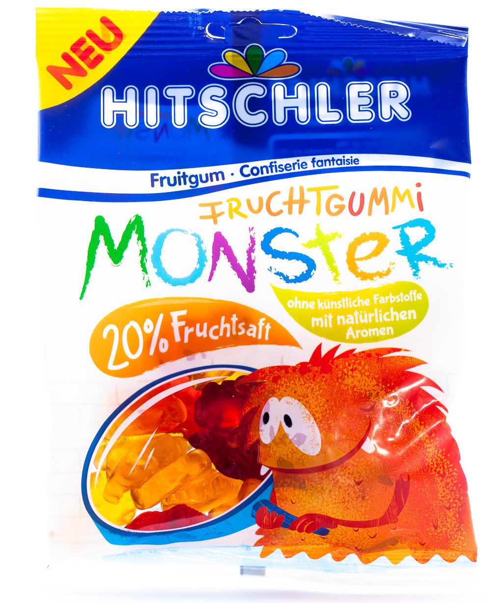 Hitschler is a German candy company that we presented to you the first time July 2014. In that month's box you received the Apfel Schnüre. This month we selected the Fruchtgummi Monsters for you. Again you can read "NEU" on the package. Furthermore it says that the little monster shaped gummis include 20% fruit juice and that they are made without artificial coloring and only with natural aroma. And you can really taste and smell that. The gummis are very fruity and delicious. And, again, I love the design of the package. The monster on the bag is holding a magnifying glass to look into the bag and see all the small gummi monsters – so funny! By the way, Hitschler is a German candy manufacturer from Cologne, our hometown. Beside Haribo they produce some of the best wine gums – that's what they prove again with the Fruchtgummi Monsters!