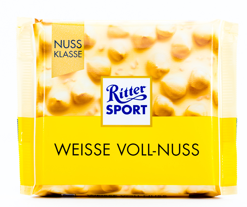 All of you white chocolate lovers will be glad to see this German chocolate bar in your monthly candy subscription box from Germany. Ritter Sport is one of your favorite brands in your Candy German box. Most of their sorts consist of milk or dark chocolate, but there are also some sorts that consist of white chocolate – so does the Weisse Mandel = white almond and the Weisse Voll-Nuss = white whole nut. As the names promise, there are almonds or whole hazelnuts in your bar. These are very crunchy and aromatic. The white chocolate is very smooth, creamy, sweet… delicious. Enjoy this German chocolate bar! Sorry, we missed to take a picture of the Weisse Mandel bar.