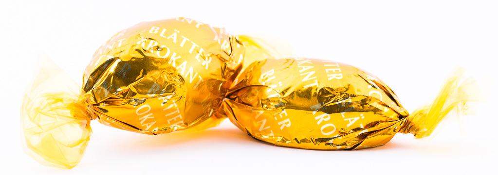 If you were already subscribed to Candy German Christmas 2014, you already know the Friedel Blätterkrokant which is brittle of nut crunch. From the outside it is covered in very creamy and rich milk chocolate, the inside hazelnut brittle is extremely crunchy and deliciously sweet. There are two Blätterkrokant goodies in your box. In Germany we always eat this treat during Easter and Christmas. For Easter the German candy company Rübezahl Schokolade (Friedel is one of their brands) decided to design the Blätterkrokant as little eggs wrapped in a golden foil. It does not only look noble, it’s really a gourmet taste.