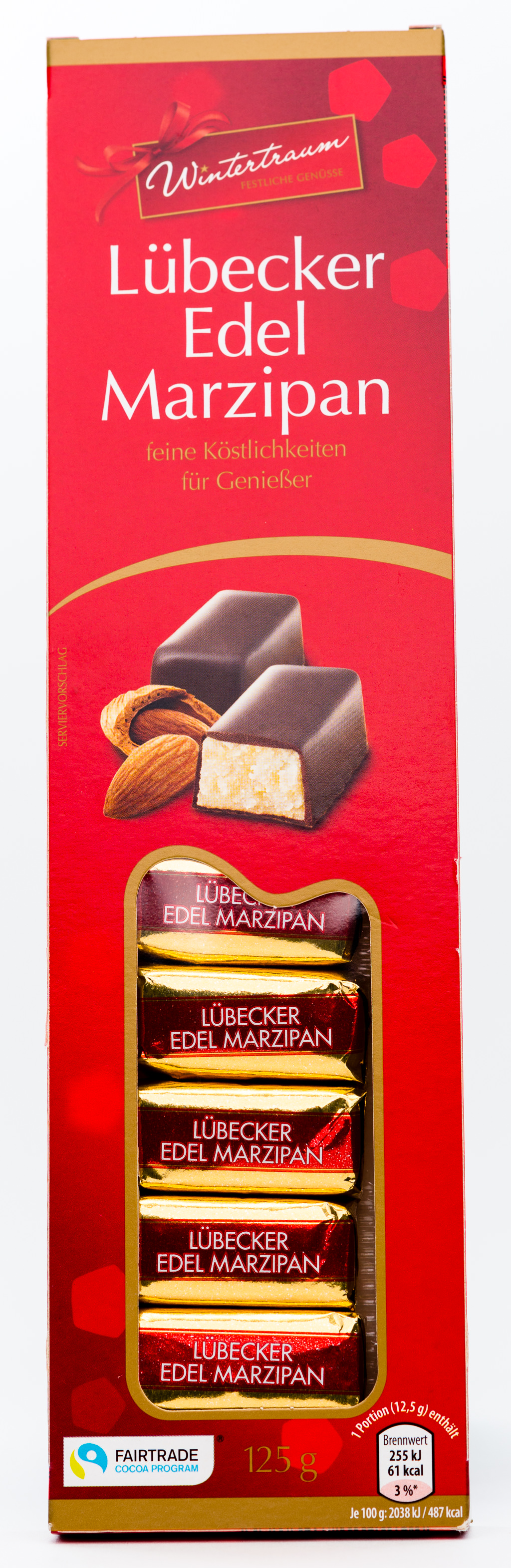 No German Christmas without marzipan. These individually wrapped marzipan chunks are covered in dark chocolate. The marzipan has a very mild almond taste, the dark chocolate fits perfectly to it. The German marzipan producer Erasmi & Carstens is a guarantee for delicious marzipan chocolates.
