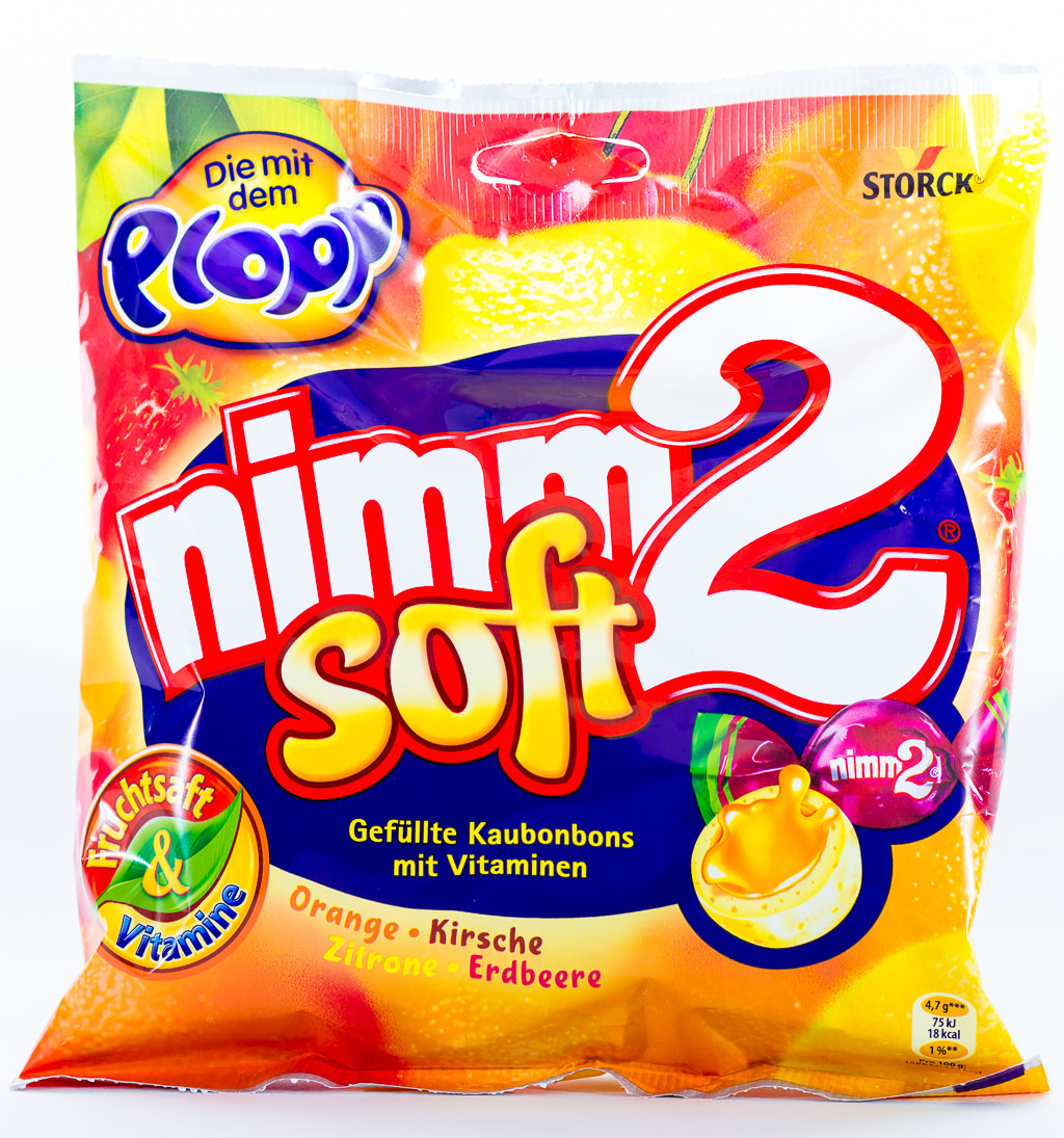 This is the ultimate fun treat in your monthly candy box from Germany! Either you got the nimm 2 soft Plopp or the nimm 2 soft Brause. Plopp stands for the feeling in your mouth and the sound when you bite through this little round German candies. They plop open in your mouth and a fruity liquid filling comes out. The little toffees are quite soft, so you can chew them very well. The nimm 2 soft Plopp comes in the flavors orange, lemon, strawberry, and cherry. The nimm 2 soft Brause comes in the flavors cherry, lemon, orange, and apple. They don’t plop open, but they start to tingle in your mouth when you chew them. That’s why they are filled with a sour and sweet sherbet powder. Both nimm 2 soft sorts contain a lot of vitamins. On the back of your package you can read that they contain vitamin C, E, B6, B12, etc. Not bad for a candy. The traditional German candy company Storck is the producer of this fun treat.