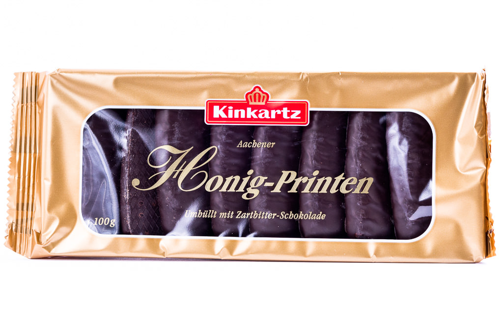 Another Lambertz brand is Kinkartz. The company is located in the city of Aachen, near the Dutch border. Aachen is one of the most traditional cities when it comes to German holiday treats. Aachener Printen are a special sort of German Lebkuchen (gingerbread) that is baked in Aachen since 1820. You can compare them with a honey bread or spiced bread in taste. The term Aachener Printen is a protected designation of origin, and so all manufactures can be found in or near Aachen. Honig is the German word for honey. That’s one of the ingredients the Kinkartz Honig-Printen contain. They are covered in dark chocolate. There are Printen recipes that result in a very hard pastry, so you really have to worry about your teeth when you eat them. The Honig-Printen in your monthly candy subscription box are a soft and juicy version. We think that this variation tastes much better than the hard one. They have a light spicy flavor and a phenomenal honey aroma. The dark chocolate topping is so good and fits to the sweet Printen perfectly.