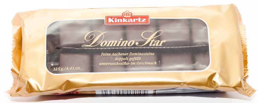 We decided to put another Kinkartz product in your German candy subscription box, the Domino Stars that are better known as Domino Steine (Domino Stones) in Germany. They can be considered as a mixture of flavors and textures. From the inside they have three layers. On the bottom there is a spicy gingerbread layer, the second is a fruity jelly one and the third is marzipan. From the outside the Domino Stars are covered by thin chocolate. Sounds good, doesn't it? Yes, the Domino Stars taste phenomenal, we love to eat them in Germany. Domino Steine are not as traditional as for example the Printen are – they were invented in 1936 in Dresden, Germany – but for me, and I think for many other Germans, they are an indispensable German Christmas candy. On the wrapping you can read "unverwechselbar im Geschmack". That means distinctive in taste – I agree!