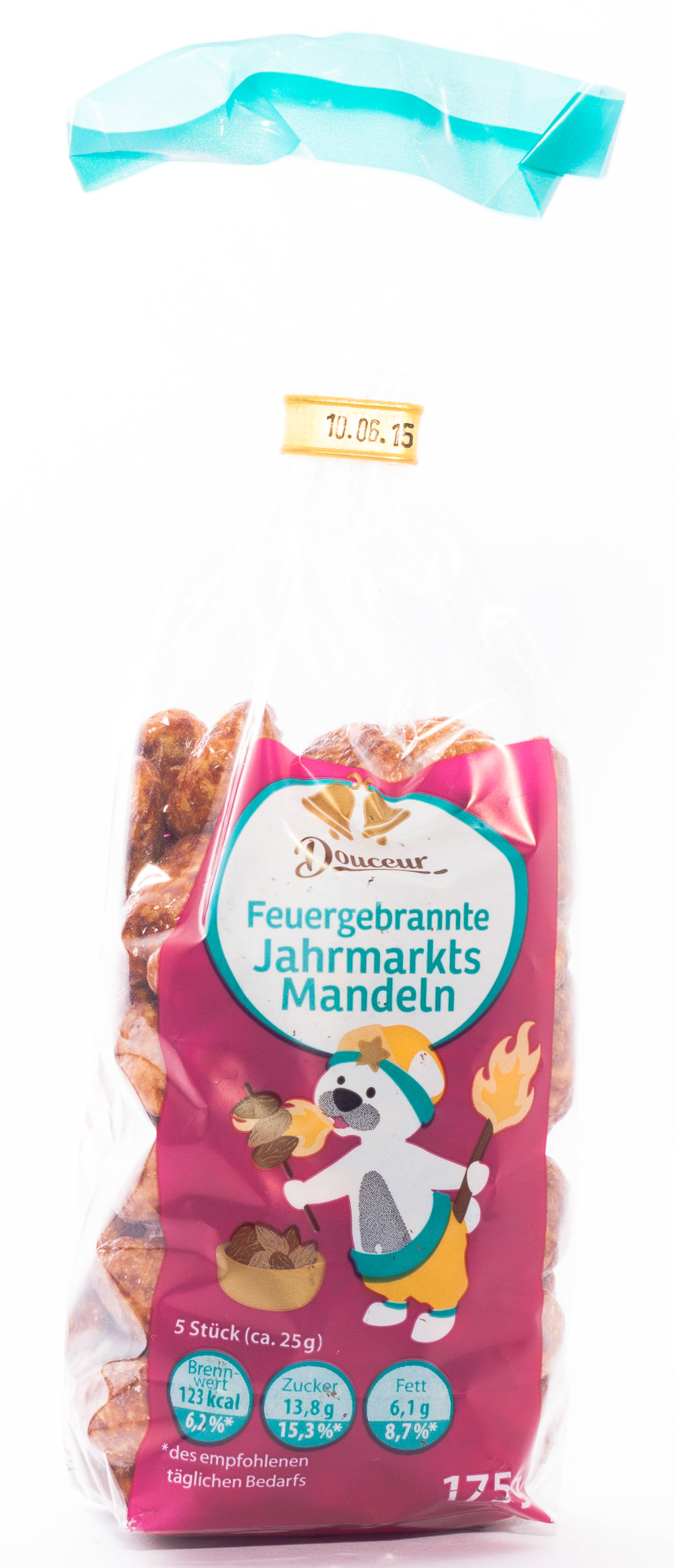 Those almonds are definitely my favorite treat in this month's German candy subscription box. I'm sure you'll like it too. Feuergebrannte Jahrmarktsmandeln means fire burnt fair almonds. On the Oktoberfest you find those almonds at every corner, and if you don't find them, just follow your nose – the smell of fresh burnt almonds is adorable.