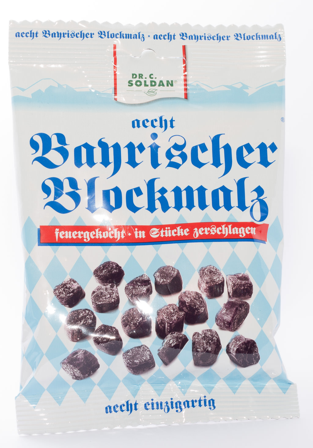 But what is Bavarian Blockmalz? It looks like licorice but it is a malt sugar cough drop. A cough drop? Yes, but I think it has nothing to do with that. It's just sweet and malty and very delicate. So you don't have to wait for your next cold until you try the drops! The production of this German candy is very unique. The malt sugar is boiled over an open fire and then broken into bite-sized chunks. Therefore the pieces are different in size and shape. The whole process follows a decades-old Bavarian tradition which was invented by pharmacist Dr. C. Soldan after whom the company is named. Don't worry about the malt! Although malt is used in beer production, malt itself has no alcohol. So you can give this German candy to your kids without concerns.