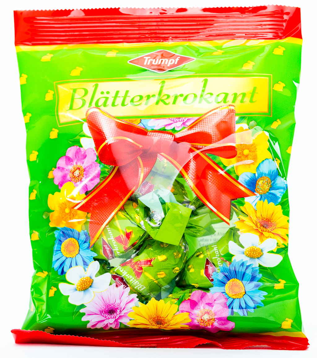 Blätterkrokant, which is brittle of nut crunch, is a well known Easter candy in Germany. From the outside it is covered in very creamy and rich milk chocolate, the inside hazelnut brittle is extremely crunchy and deliciously sweet. Well done Ludwig Schokolade who is the producer of this German candy.