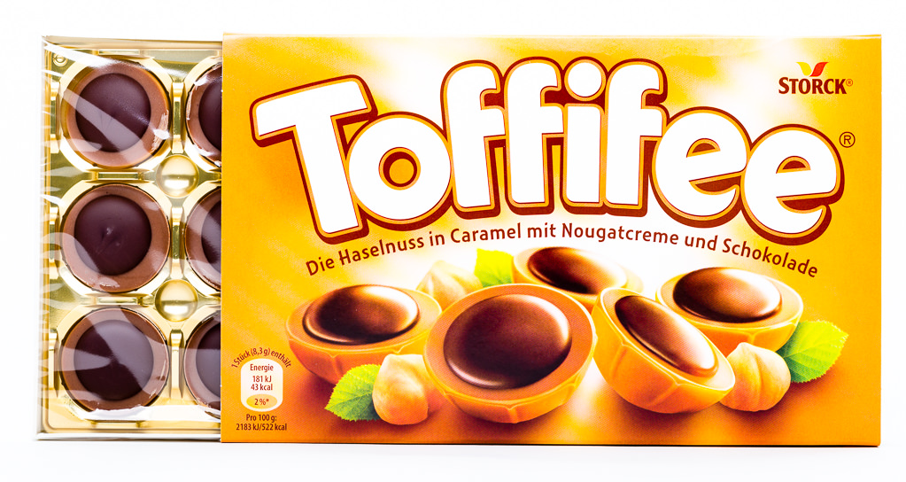 An all time favorite in your monthly candy box from Germany is Toffifee. Therefore, we put it quite often in your box. We received many many emails from you asking for more Toffifee. Here it comes. Toffifee is produced since 1973. Back then it was introduced to the market as an energy snack for business women – weird positioning, but okay… Today Toffifee is known for being the perfect family treat – everyone loves it, kids and grown-ups. I cannot imagine any Storck product that does not taste wonderful! On the package you can read: "Die Haselnuss in Caramel mit Nougatcreme und Schokolade". Mainly that is a description of this German candy. It says: The hazelnut in caramel with nougat cream and chocolate. Sounds awesome, doesn’t it? The soft and yummy caramel shell is filled harmonically with the most delicious ingredients. There is a whole hazelnut in the middle, surrounded by a smooth nougat cream. On the top there is a dot of dark chocolate icing. Those ingredients are the pure indulgence in combination. There are 15 pieces in your package, so there is enough for everyone. Enjoy it! By the way, it’s very easy to get the little treats out of the packaging. Just watch this.