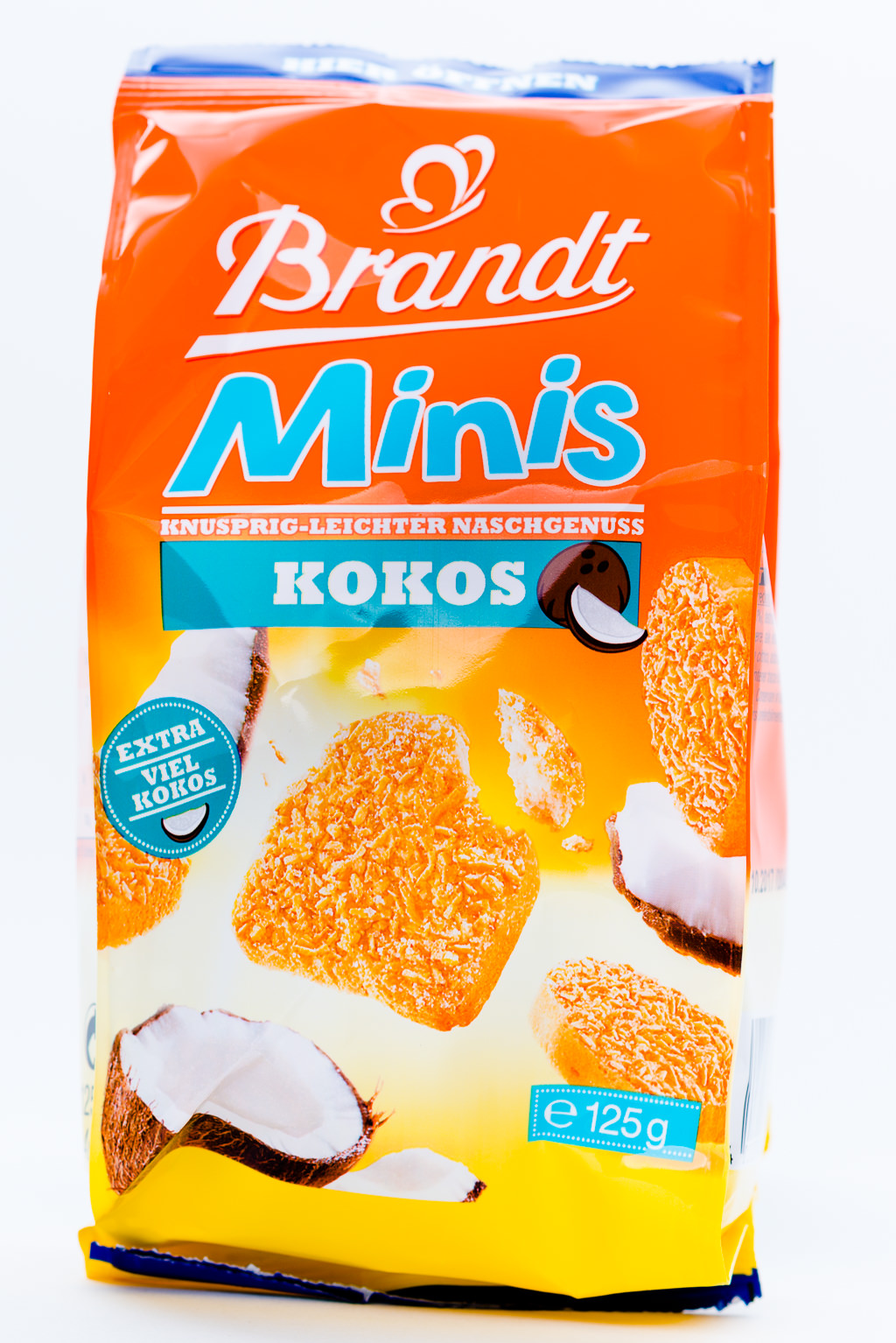 Either you got the Brandt Minis Vollkorn Zartbitter = whole grain dark chocolate, or the Minis Kokos = coconut. I could not decide which sort I like more. As I said before, I love coconut, but the whole grain dark chocolate variation is delicious too. Both variations mainly consist of rusk or Zwieback as we say in Germany. Are you familiar to Zwieback? I used to eat it as a kid when I was feeling sick and could not eat anything else. It is a very crunchy roasted bread which is a little sweet. I remember the German company Brandt only produced the plain original rusk sort back in the days, which was mainly eaten for breakfast, but for many years now they also entered the candy market. The Vollkorn Zartbitter Minis are glazed with dark chocolate. The rusk itself is a bit darker as the original rusk, because it is whole grain. Also it has a stronger bite, what I really enjoy. The whole grain rusk and the dark chocolate are a perfect fit. The Minis Kokos are a combination of the original plain rusk and a quite thick coconut flake glaze. On the package you can read "with extra coconut". I agree, the amount of coconut is great. It gives the whole treat an awesome flavor. Both Brandt Minis sorts are very crunchy, so it is quite loud when you eat them. I recommend not to eat your Brandt Minis at the cinema! ;-)