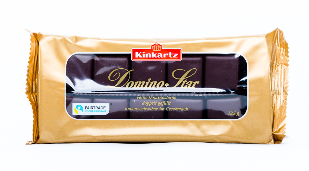 Domino Stars, better known as Domino Steine (Domino Stones) must not be left out in a holiday German candy subscription box. Domino stones are a must-have for Christmas. They can be considered as a mixture of flavors and textures. From the inside they have three layers. On the bottom there is a spicy gingerbread layer, the second is a fruity jelly one and the third is marzipan. From the outside the Domino Stars are covered by thin chocolate. Sounds good, doesn't it? Yes, the Domino Stars taste phenomenal, we love to eat them in Germany. Domino Steine were invented in 1936 in Dresden, Germany. Today they are produced in Aachen. I love all Kinkartz products. On the wrapping of the Domino Stars you can read "unverwechselbar im Geschmack". This means distinctive in taste – I agree!