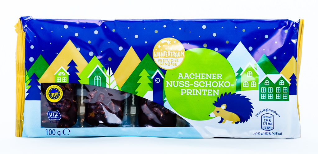Aachener Printen are a special sort of German Lebkuchen (gingerbread) that is baked in Aachen since 1820. You can compare them with a honey bread or spiced bread in taste. The term Aachener Printen is a protected designation of origin, and so all manufactures can be found in or near the German city Aachen. There are Printen recipes that result in a very hard pastry, so you really have to worry about your teeth when you eat them. The Nuss-Schoko-Printen in your monthly candy subscription box are a soft and juicy version. We think that this variation tastes much better than the hard one. They have a light spicy flavor and a phenomenal crunchy texture because of the nuts. The dark chocolate topping is so good and fits to the sweet Printen perfectly. Enjoy with a cup of coffee or tea!