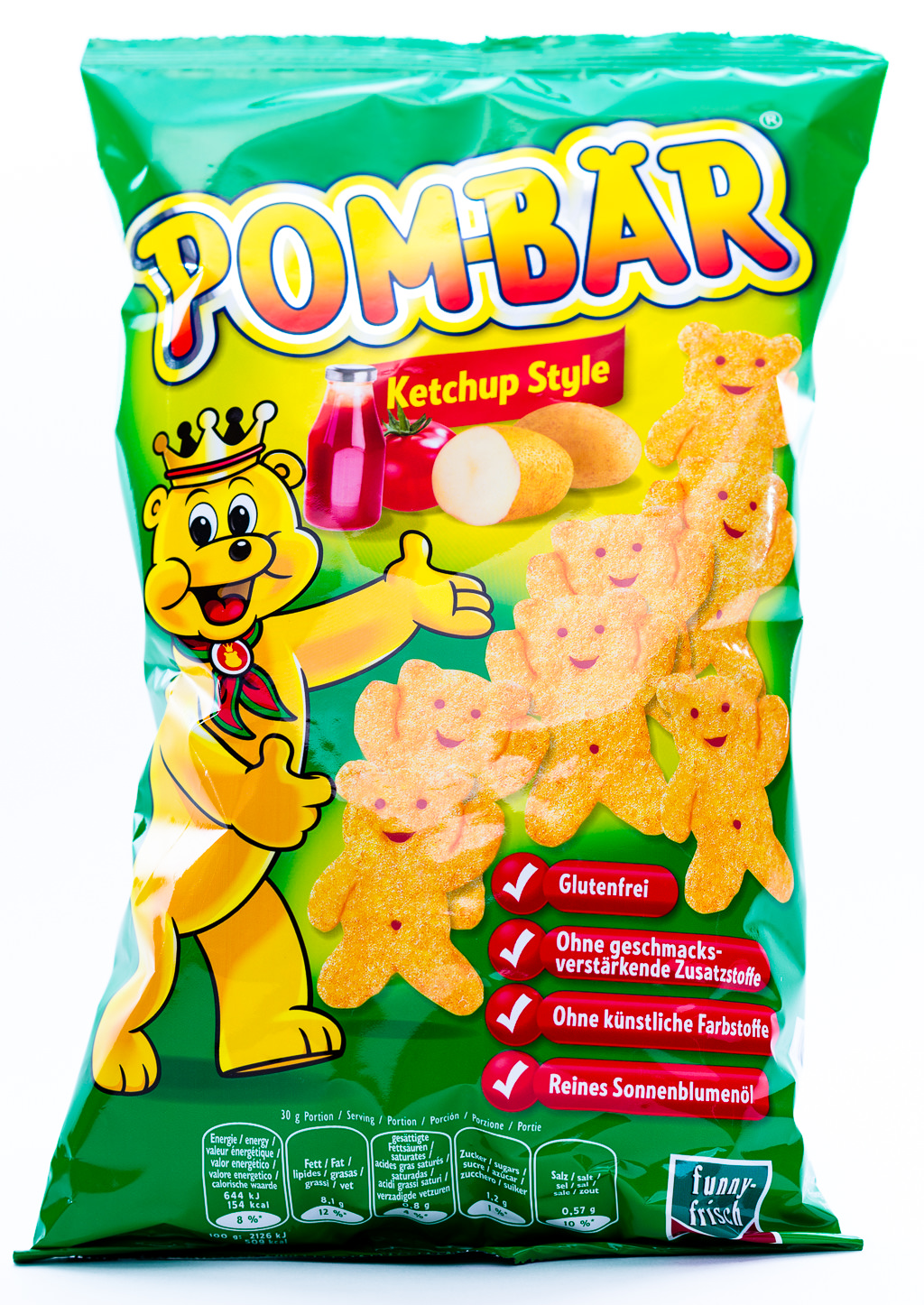 Pom-Bears are a all time favorite in your summer Candy German subscription box. You told us that you loved them in the past years, especially the ketchup style sort, so here it is again. Pom-Bär is a very well known product by the German company Intersnack. I remember Pom-Bär being a new product when I was a kid – it was really a must-have. Back then only the original sort was available, later other sorts completed the assortment. All sorts have in common that they are gluten free, without artificial flavor enhancers or artificial coloring, and they contain pure sunflower oil. The Pom-Bears Ketchup Style are very crunchy and tasty and have an intense ketchup flavor. They are pleasantly salty and not as greasy as normal potato chips are. Enjoy your Pom-Bears!